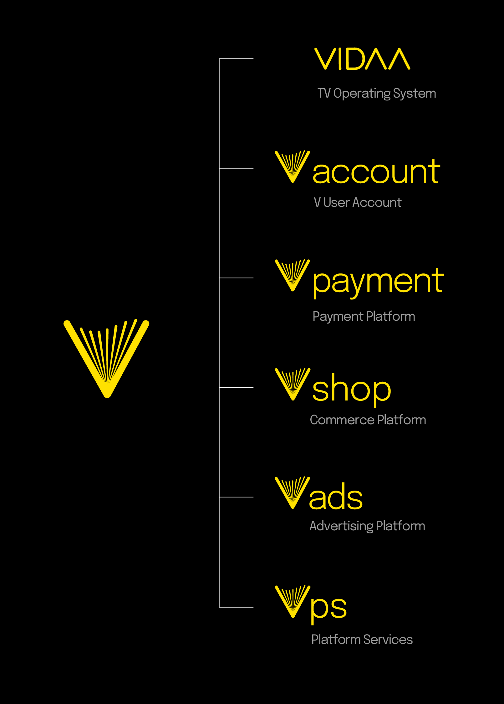 V is the platform brand, and HomeOS is the TV operating system within the V ecosystem. Together they will support services for users, partners, and the broader home experience.